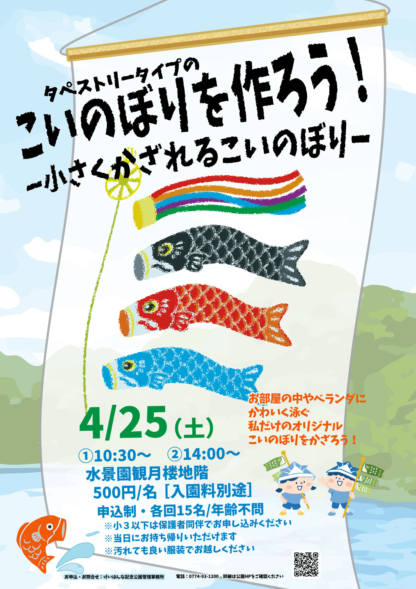 手元で飾れる小さなこいのぼりのタペストリーを親子で作ってお持ち帰りいただきます。