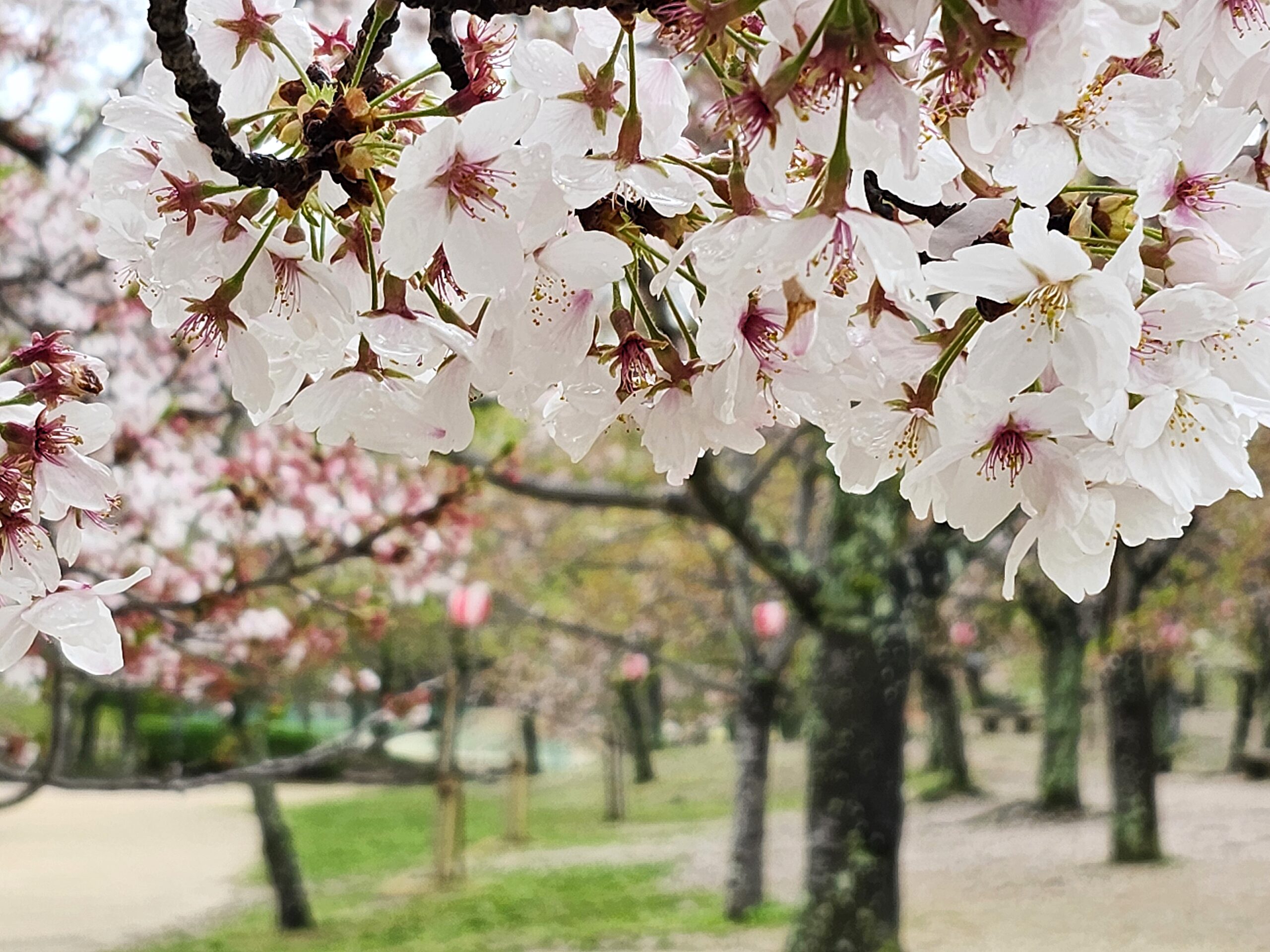 風雨で散り進んでいますが、まだ残っている花も見られます。名残りを惜しんでいただける程度ではありますが、全体に葉桜へ移行しています。
