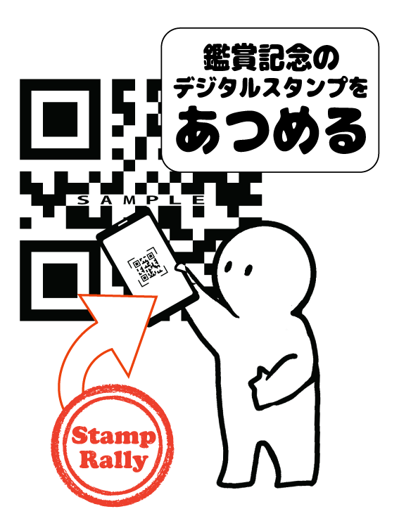 ●1つの展覧会で1回の記念スタンプ発行です。年間で15個以上の展覧会(スタンプ発行)を予定していますので、ご来場いただいた展覧会ごとにデジタルスタンプを集めてください。